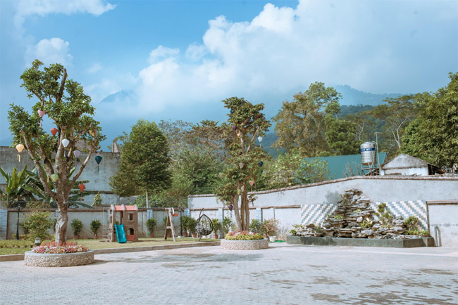 Phòng rộng 20 mét vuông, xây theo phong cách Châu Âu hiện đại, view đẹp nhìn ra vườn.